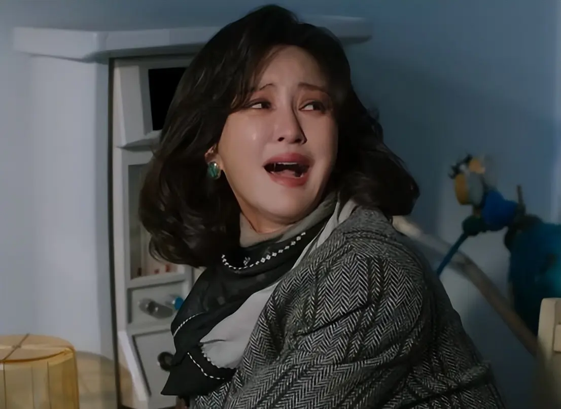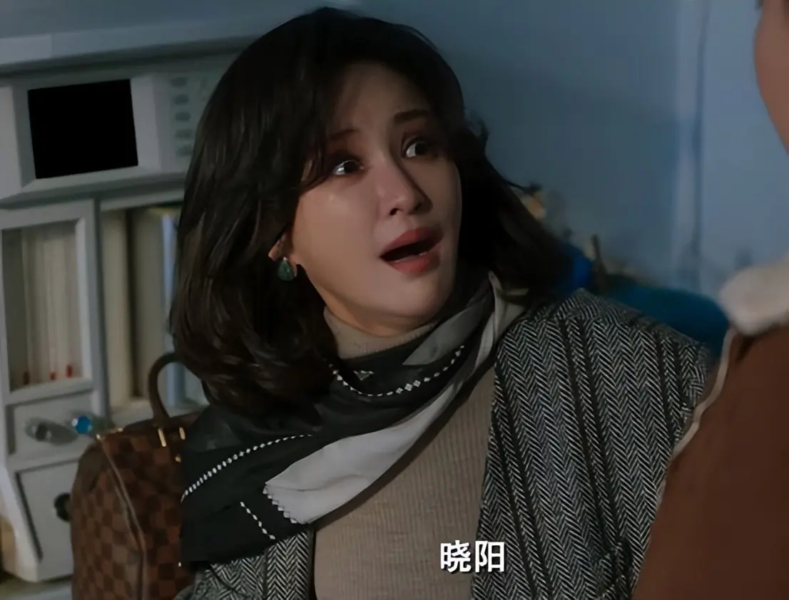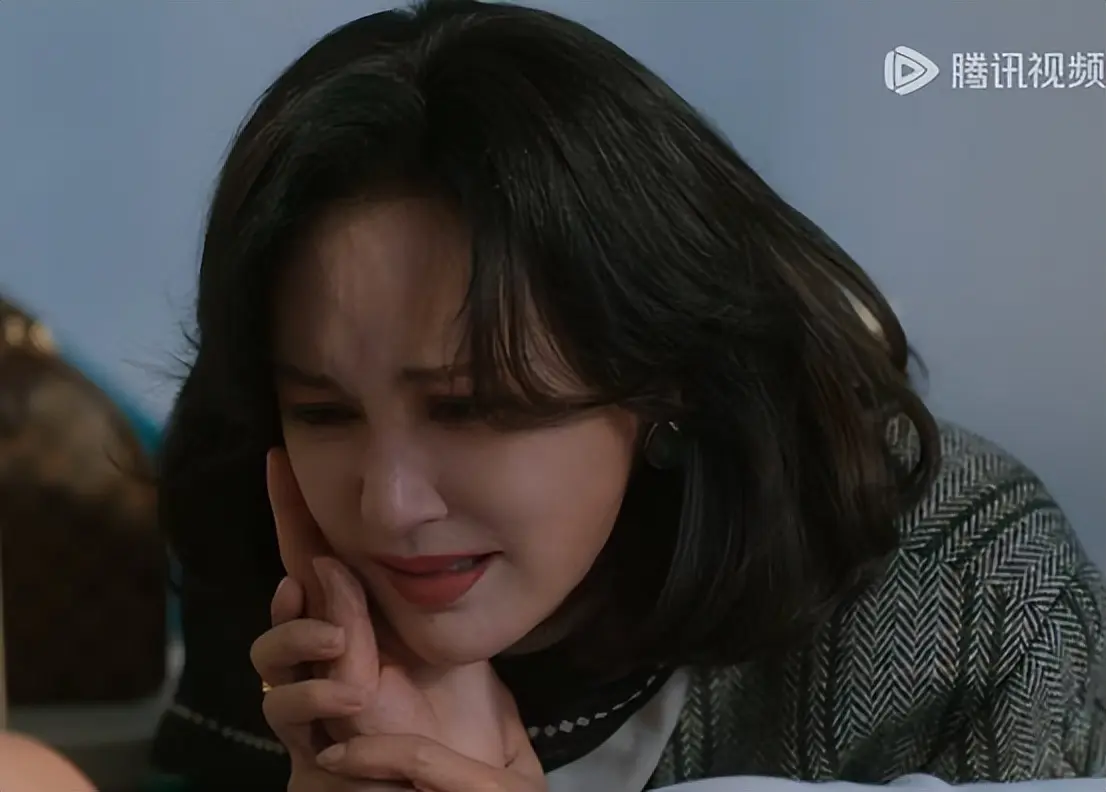 剧中她哭着看向儿子时,有些夸张的表情带动高脸部的皮肤,鼻梁与眼睛之间的纹路、嘴角撑起的线条,都显得有些紧绷。