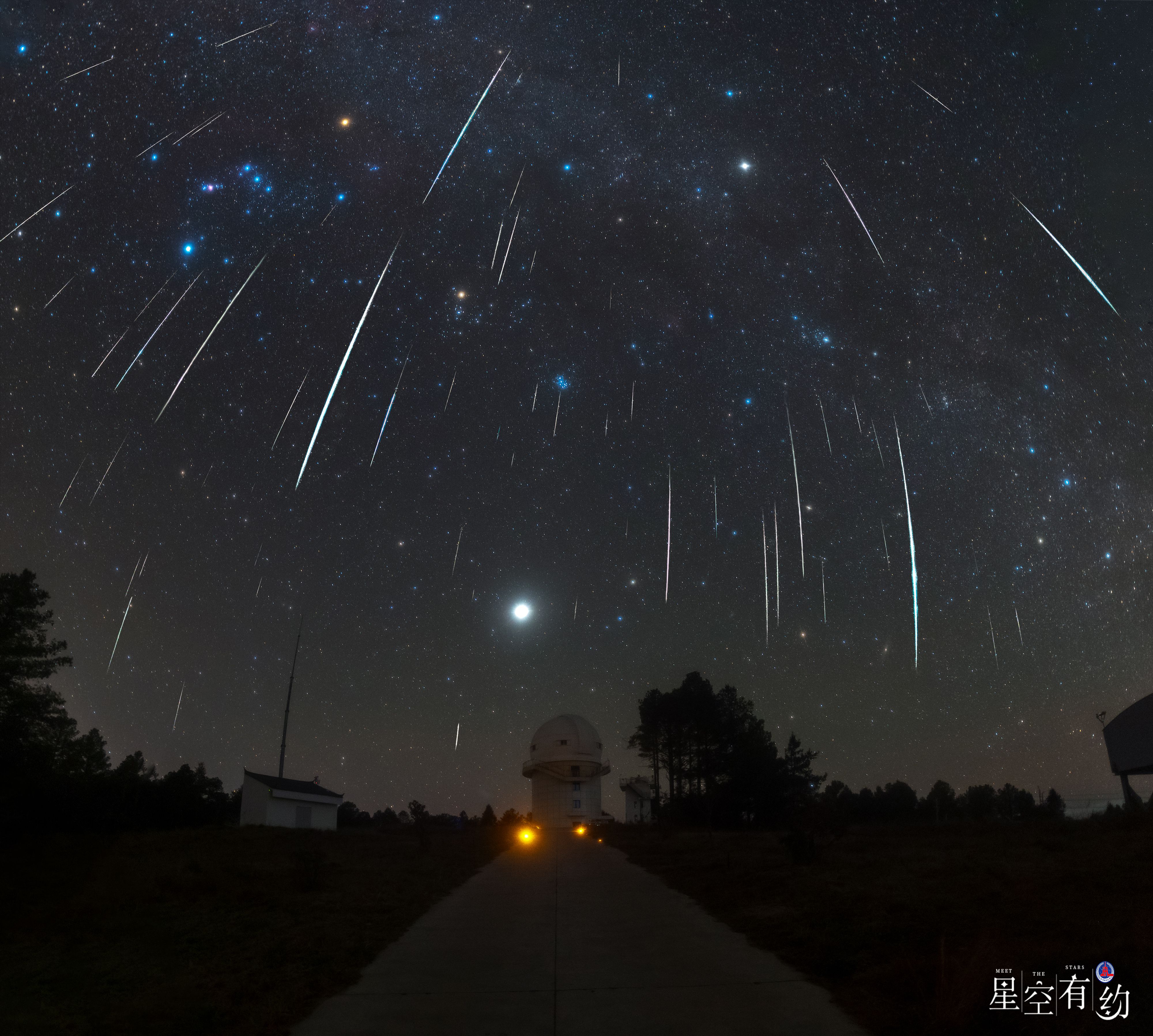 2023年12月14日,在云南丽江拍摄的双子座流星雨(多张叠加)。(徐琛摄,星联CSVA供图)